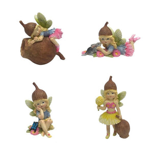 New to our Flower Garden Fairy Collection the Gumnut Fairies are particularly at home in our Australian bushland. All the Flower Garden Fairies are beautifully detailed and painstakingly handpainted. A beautiful addition to your fairy garden or miniature scene.