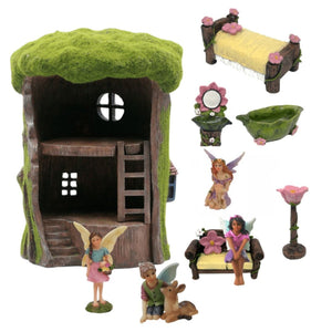 This is a quality kit and it includes its own range of perfectly sized furniture - a flower bed, pea pod bath tub, bathroom vanity, fire place, flower sofa, and flower floor lamp. We also include Fairy Blossom (standing), Fairy Ethan (with baby deer) and Fairy Mia (sitting).