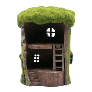 This gorgeous Two Storey Mossy Tree House Kit has all sorts of possibilities for imaginative fairy play! The house has two levels, the lower level is accessed by a small staircase to the left side, and the upper level is entered by climbing a little ladder (or flying!)