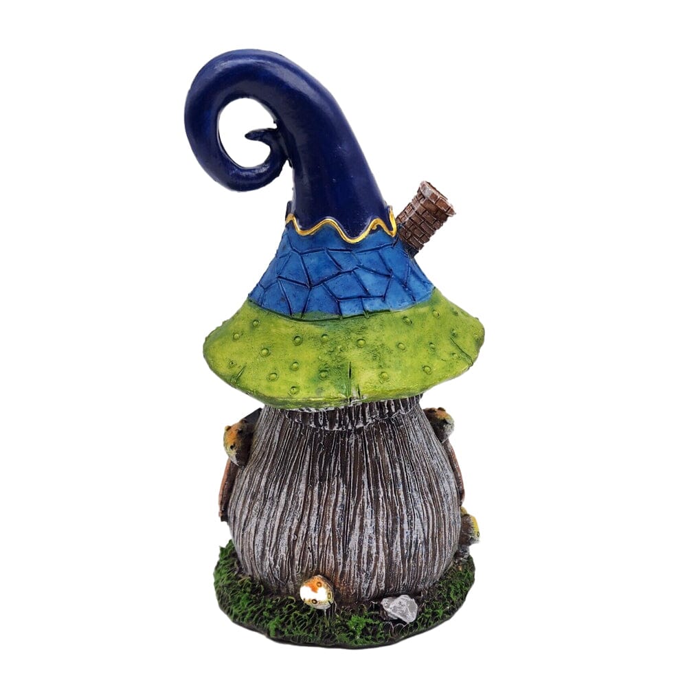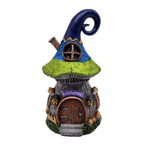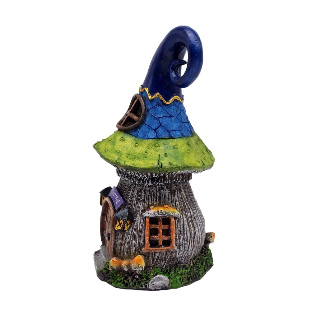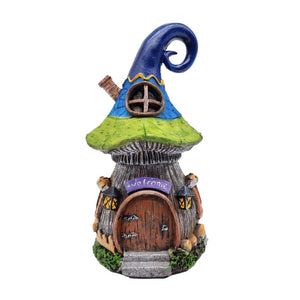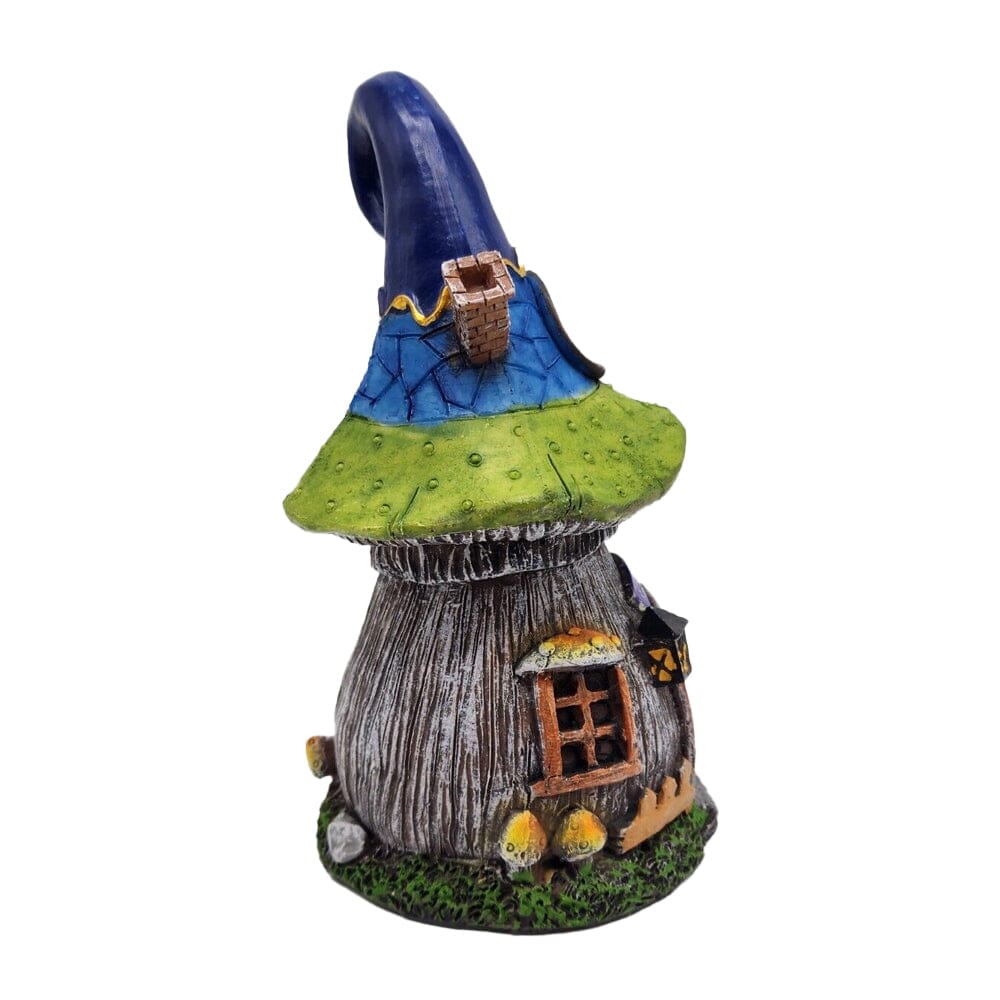 This gnome house features a twisted mushroom design. Tiny flagtstones lead to the front door (which is non-opening).