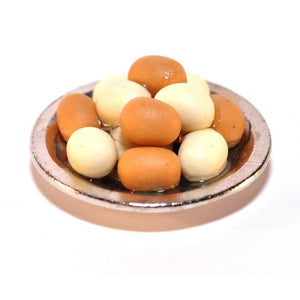 These lovely, wholesome eggs looks so delightful in their splendid silver bowl. A great accessory to add to any fairy garden or miniature scene.
