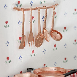 Get a tiny kitchen ready for cooking all kinds of meals with these Miniature Copper Kitchen Utensils and Rack! Read More<