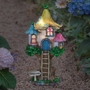 Crafted from durable, weather-resistant resin and UV-treated to resist fading, "Buttercup Treehouse" ensures enduring beauty through every season. Whether as a centerpiece or a thoughtful gift, it effortlessly adds a touch of whimsy and magic to any outdoor space.