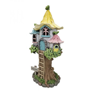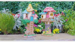 The Treehouse is a beauty and a truly impressive feature for a fairy garden. Standing at 44cm tall (!), it will give the fairies a lofty perch to observe your garden from. It features a little ladder leading to a welcoming blue door, and peekaboo windows that invite the enchantment of the outdoors inside. At dusk, delight in the soft glow of its solar-powered LED butterfly, casting a gentle illumination that enhances the charm of any garden.