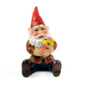 • This sweet fellow is posed sitting, holding on to a lovely bunch of bright flowers. He has three brothers, Sitting Gnome with MushroomsSitting Gnome with BookSitting Gnome with Apple. He is also available as a complete set, Sitting Gnomes - Set of 4