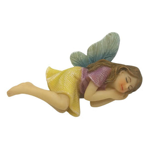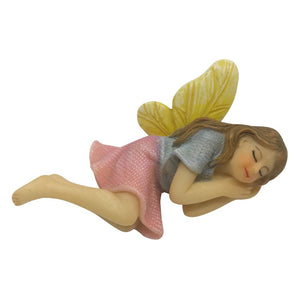 Another lovely fairy from the Willow Collection, Fairy Aurora sleeps sweetly with her hands clasped under her head. She looks particularly peaceful popped inside the "Believe" Fairy House with Opening Doors.