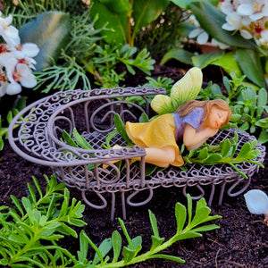 Give your fairy garden a touch of elegance with this delightful Rust Brown Metal Chaise Lounge! Perfect for fairies to relax in style, this miniature chaise offers a cozy spot for basking under the fairy sun or stargazing on warm evenings. With its soft pink hue and intricate design, this charming lounge adds a dash of sophistication to any garden scene. Pair it with a fairy-sized side table or place it next to a tiny garden pond for a dreamy little retreat. A must-have for fairies who love a bit of luxury!