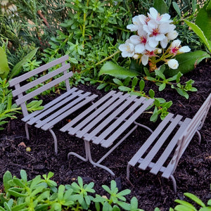 Transform your fairy garden into a whimsical haven with our Rust Metal Park Bench Set - 3pcs! This charming set includes two benches and a matching picnic table, perfect for creating cozy seating areas for your fairies. With its soft pink hue, this set brings a splash of style and a touch of elegance to any garden nook. Ideal for fairies to gather, chat, or simply enjoy the scenery, this set invites warmth and personality into your magical outdoor world. Perfect for gifting or for creating your own tiny enchanted escape!