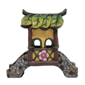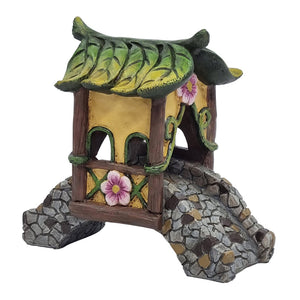 This sheltered bridge is a beautiful accent piece for any fairy garden or miniature scene.