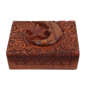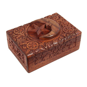 This is a beautifully hand carved wooden box, with the Moon and Star symbols adorning its lid. It can be used as a Tarot / Angel Card box or to keep your jewellery or crystals safely protected. Whatever use you decide upon, it is a stunning addition to your home's decor.