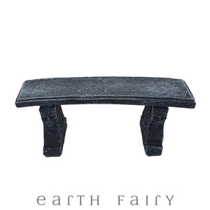 Aged 'stone' effect bench, featuring lion's head detailing. This bench is perfectly sized and beautifully formed to seat a shelf sitting fairy.