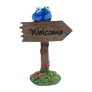 The Welcome Sign with Bluebirds is a great way to mark the entrance to your garden! It features two cute bluebirds sitting on top of a wood sign which reads 'Welcome'. Little red flowers and vines adorn the post and base of the piece, adding a pop of colour. Read More<
