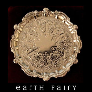 A miniature silver tray that can be used for a tea set, or as a fairy food platter! Perfect for a fairy tea party, or to serve your fairy birthday cake.