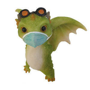 This small green dragon figurine is wearing a face mask and has a pair of safety goggles atop his head. He is staying safe from the pandemic and looking as cute as a button! Read More<