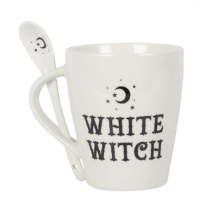 This bewitching mug and spoon set will add a pinch of magic to every cuppa. Style features 'White Witch' text and matching teaspoon with a mystical moon and star design that fits perfectly in a slotted handle. 500ml capacity. Dishwasher and microwave safe.