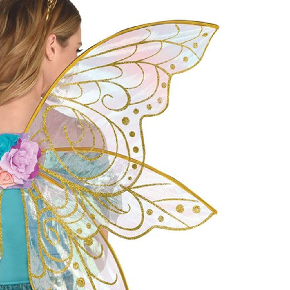 All that glitters is gold! How pretty are these Glittery Gold Fairy Wings? These three tiered wings tick all the boxes, with their transparent effect and glittery detailing. A pretty floral centrepiece secures the wings at the fold. These fairy wings will turn heads!