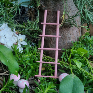 Add a touch of rustic charm to your fairy garden with this miniature metal ladder. Perfect for creating whimsical scenes, it’s ideal for fairies to climb or as a decorative accent. Crafted in a soft pink finish, this piece measures 3.5cm x 0.5cm x 12cmH, making it a delightful addition to your magical garden.