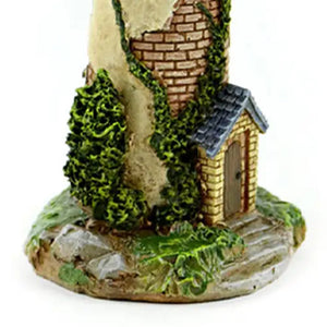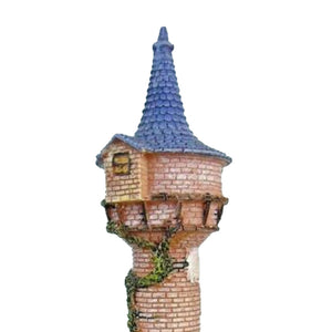 What a beautiful tower, straight from a fairytale! It stands on a green grassy base with stone steps leading to a small door for the wee folk. Green vines crawl up the sides of the tower to the blue pointy roof. It is the perfect castle for your fairies to hide away from the world. Great for reenacting all the fairy tales you've long heard of.