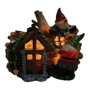 By day, its charming details and bright colours make it a standout addition to any fairy or gnome garden. As night falls, the solar light softly glows from within, casting a welcoming golden light through the windows and door β a magical sight for evening garden strolls.