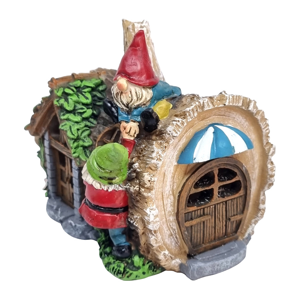 Add a touch of woodland whimsy to your garden with our Log House with Gnomes β Solar. Crafted to look like a cozy home carved into a fallen tree, this enchanting piece features two cheerful gnomes hard at work outside their rustic log dwelling β one climbing, the other lending a helping hand.